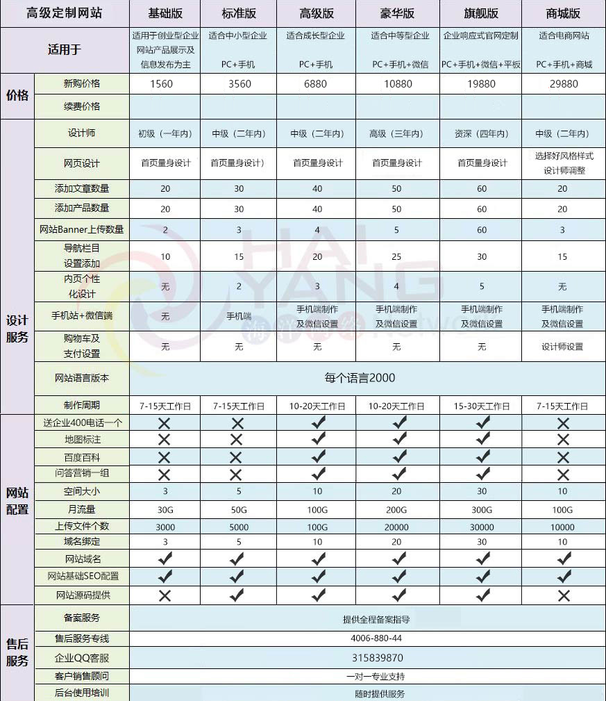定製(zhi)網站開髮(fa) 套餐